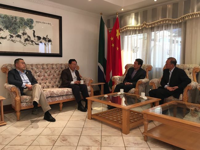 張學(xué)武董事長現(xiàn)場參觀了簽證中心服務(wù)大廳,與簽證中心管理團(tuán)隊(duì)及一綫員工進(jìn)行交流,瞭解簽證中心運(yùn)作幷要求簽證中心在工作中要「講政治、重安全、提服務(wù)」,要充分展現(xiàn)港中旅企業(yè)的良好面貌。在南非期間,張學(xué)武董事長還拜會了中國駐約翰內(nèi)斯堡總領(lǐng)館阮平總領(lǐng)事、駐德班總領(lǐng)館王建州總領(lǐng)事,感謝領(lǐng)館對簽證中心的支持。