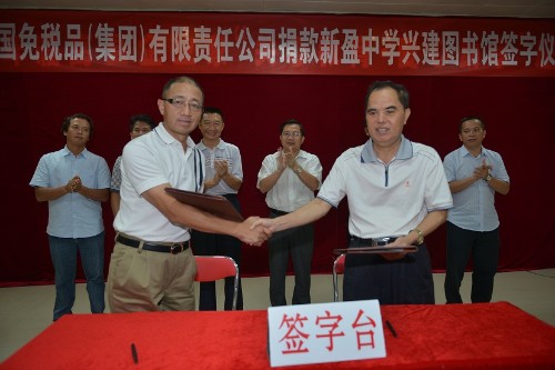 中免集團黨委書記陳建山在捐助儀式上表示,對公益事業(yè)的持續(xù)投入是中免集團始終堅持的原則之一。作為中國最大的奢侈品運營商和國內(nèi)旅游零售業(yè)的代表,中 免集團始終秉承著作為企業(yè)公民的社會責(zé)任,暨企業(yè)在享受國家、消費者乃至整個社會所賦予的生存和發(fā)展機遇的同時,以行業(yè)道德行為和成果貢獻回饋社會,既為 企業(yè)生存與發(fā)展?fàn)I造了極佳的社會氛圍,使企業(yè)保持旺盛的生命力,又為企業(yè)贏得了長期穩(wěn)定、健康和諧的持續(xù)發(fā)展機遇?!爸忻饧瘓F尤其重視對經(jīng)營當(dāng)?shù)氐墓嬷?持,至離島免稅政策實施以來,中免集團三亞免稅店立足海南市場,充分發(fā)掘當(dāng)?shù)芈糜谓?jīng)濟潛力,取得了驕人的業(yè)績,我們愿意與當(dāng)?shù)厣鐓^(qū)分享我們的成長,對于捐 建新盈中學(xué)圖書館,對于促進臨高的教育公平,我們感到非常榮幸?!标惤ㄉ皆趦x式上介紹。