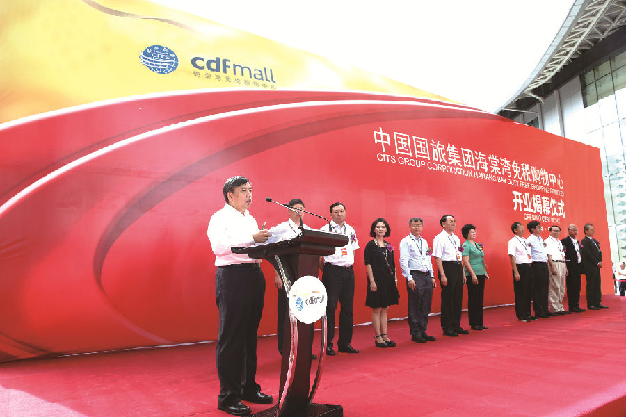 開業(yè)儀式上,王為民發(fā)表了熱情洋溢的講話。他首先代表國旅集團對各界的關(guān)心和支持表示衷心的感謝,隨后簡要介紹了國旅集團的基本情況、主要業(yè)務(wù)和今后發(fā)展方向。他回顧了海南離島免稅政策、三亞市內(nèi)免稅店發(fā)展歷程。2007年,國旅集團提出“在海南開展離島免稅購物”的構(gòu)想,并配合海南省委省政府爭取離島免稅政策;2011年,中免三亞免稅店作為離島免稅業(yè)務(wù)試點啟動,極短時間內(nèi)便迅速成為海南省日均接待游客過萬的旅游景點之一,至今已累計接待顧客1200多萬人次?!奥糜渭用舛愘徫铩币殉蔀楹D下糜蔚男旅?。他向與會嘉賓介紹了海棠灣免稅購物中心項目的特點和優(yōu)勢,并表示項目的落成開業(yè)將極大地釋放海南離島免稅政策紅利,助力海南國際旅游島建設(shè),也必將成為我國免稅業(yè)發(fā)展的里程碑。他說,海棠灣免稅購物中心是全球最大的免稅商業(yè)綜合體,總面積達12萬平米、集購物、休閑、娛樂、餐飲等多功能于一身,具有國際先進水準(zhǔn)、地標(biāo)性的建筑。它集合優(yōu)勢資源,招商引進了300個全球頂級時尚品牌和精心準(zhǔn)備的超過10萬個單品;其中有的是攜手合作伙伴,打造的最新、最時尚的概念店、全球最大和亞洲最大的品牌旗艦店。國旅集團將以一流的品牌、一流的商品、一流的服務(wù)、一流的環(huán)境,為海南省、三亞市和來海南的廣大游客帶來持續(xù)不斷的驚喜和發(fā)現(xiàn)!展望未來,國旅集團將進一步堅定深耕海南旅游市場的信心和決心,通過積極整合旗下免稅、旅行社等多業(yè)務(wù)板塊資源,不斷發(fā)揮在資金、品牌資源、運營、管理等方面的優(yōu)勢,利用海棠灣免稅購物中心這個全新平臺,積極推動國際旅游島建設(shè),為廣大游客奉獻更為豐富多彩的旅游購物體驗。他堅信,有社會各界的鼎力支持和關(guān)愛,有全體員工的智慧和奉獻,海棠灣免稅購物中心一定會拿出驕人的業(yè)績,成為國家海岸獨具魅力的亮麗風(fēng)景,為海南旅游業(yè)發(fā)展做出積極的貢獻!