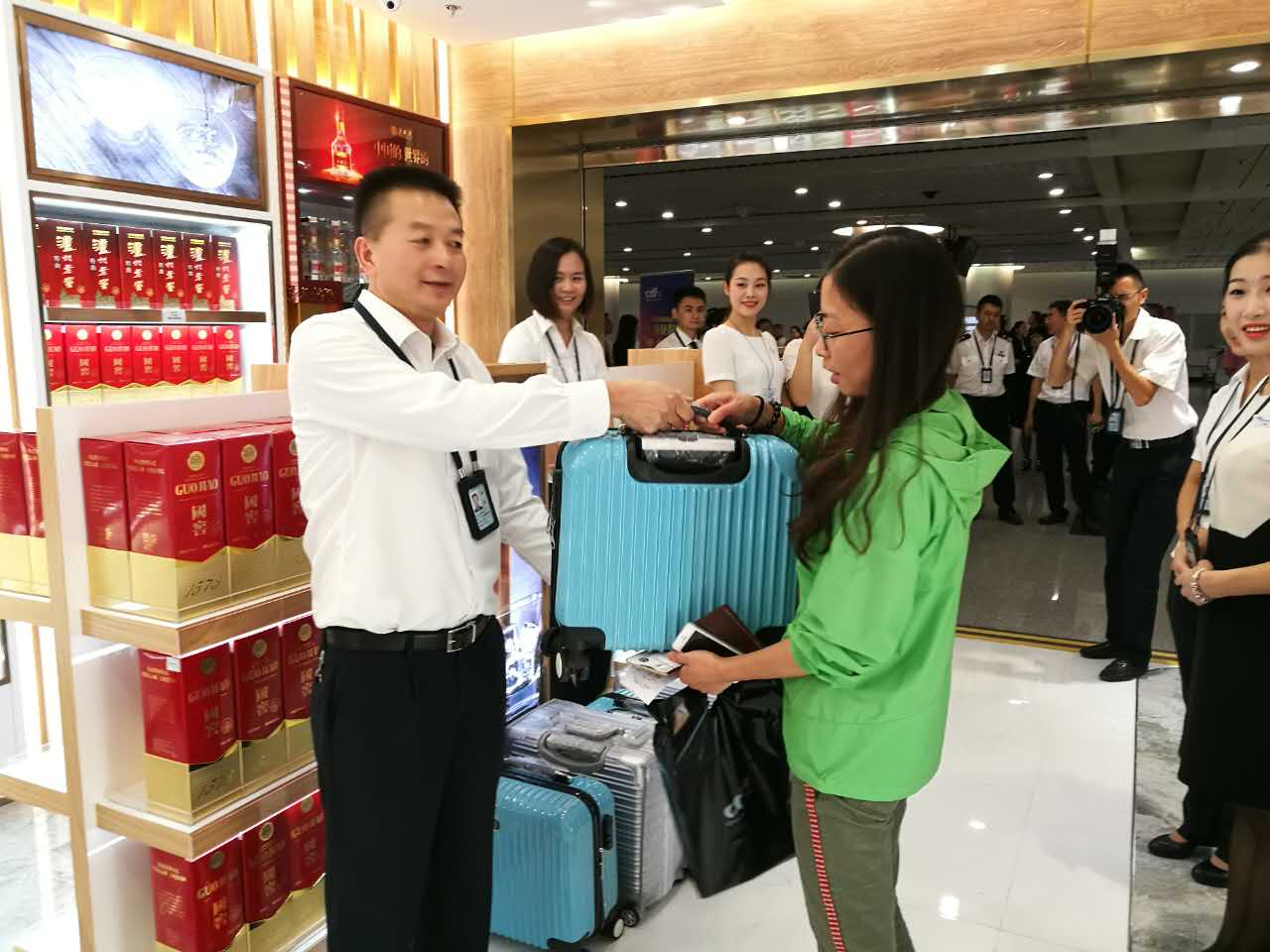 免稅店開業(yè)當(dāng)日,中免集團(tuán)董事長陳建山、總會(huì)計(jì)師劉曉東,四川機(jī)場集團(tuán)董事長李偉、副總經(jīng)理孫紹強(qiáng),機(jī)場旅服公司總經(jīng)理蔣富榮、書記劉國軍等多位領(lǐng)導(dǎo)蒞臨并見證了這一重要時(shí)刻,領(lǐng)導(dǎo)們對免稅店全體干部和員工在工作中加班加點(diǎn),不怕困難、專業(yè)高效的精神給予了充分肯定,并希望大家再接再厲,工作更上一層樓。免稅店開業(yè)之時(shí),《成都商報(bào)》、《華西都市報(bào)》、《川報(bào)觀察》、《四川在線》等媒體相繼進(jìn)行了宣傳報(bào)道,同時(shí)免稅店亦開展了“前20名旅客進(jìn)店有禮”等開業(yè)活動(dòng),極大地提升了免稅店品牌知名度,推廣了進(jìn)境免稅業(yè)務(wù),營造了免稅店新形象。