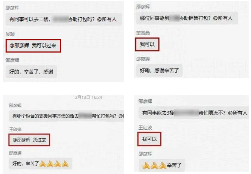 支援過程中,面對客流急速攀升、顧客咨詢問題增多、秩序維護繁忙、貨物打包分揀壓力大,需臨時調動支援崗位等情況,黨群工作部負責春節(jié)黨員支援服務現場協(xié)調工作的邵彥輝第一時間溝通協(xié)調,支援隊員們積極響應,義無反顧地沖鋒在前?!拔铱梢浴薄拔疫^去”“我來”成了“紅色先鋒隊”支援交流群里的“刷頻”詞條,這是隊員們默契配合、共同應對挑戰(zhàn)的具象體現。